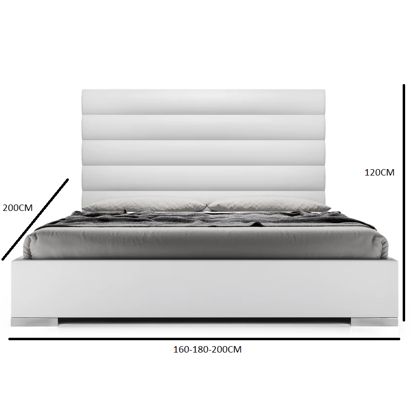 يضفي لمسة من الفخامة على غرفة نومك. يأتي بارتفاع 154.9 سم، وعمق 218.4 سم، مع خيارات عرض تتراوح بين 150، 160، 180، و200 سم، مما يجعله مناسبًا لمساحات متنوعة. مصنوع من خشب طبيعي عالي الجودة وجلد فاخر، يوفر هذا السرير مظهرًا أنيقًا وراحة لا مثيل لها. اللون الأبيض مع الرمادي يضفي شعورًا بالهدوء والأناقة،