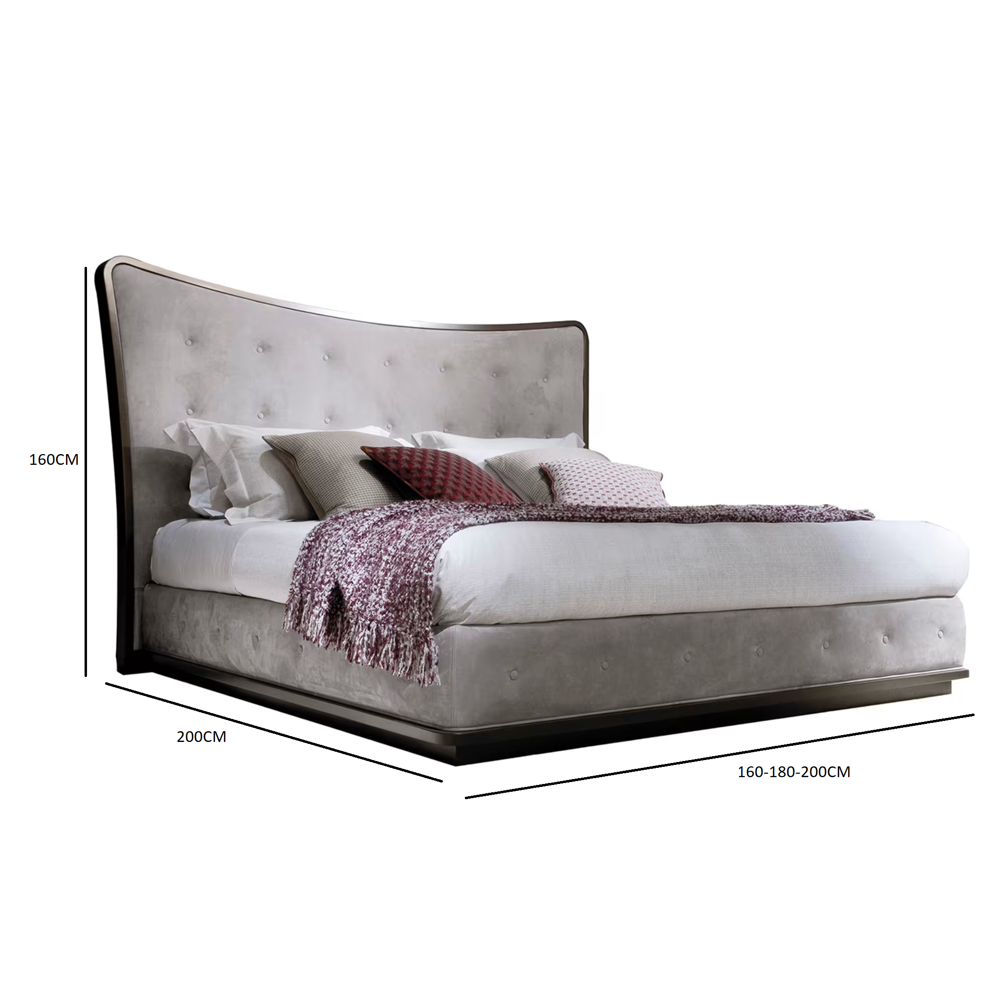 سرير مودرن باللون الرمادي يتميز بتصميم أنيق وعصري يضفي لمسة من الفخامة على غرفة النوم. مصنوع من خشب طبيعي متين ومغطى بقماش رمادي ناعم، مما يجمع بين المتانة والراحة. يتوفر بأحجام متنوعة (عرض 150-160-180-200 سم) مع ارتفاع 160 سم وعمق 230 سم، مما يوفر مساحة واسعة للنوم والاسترخاء. اللون الرمادي العصري يجعله مناسبًا لمختلف أنماط الديكور الحديث، ليكون إضافة مميزة لأي غرفة نوم.