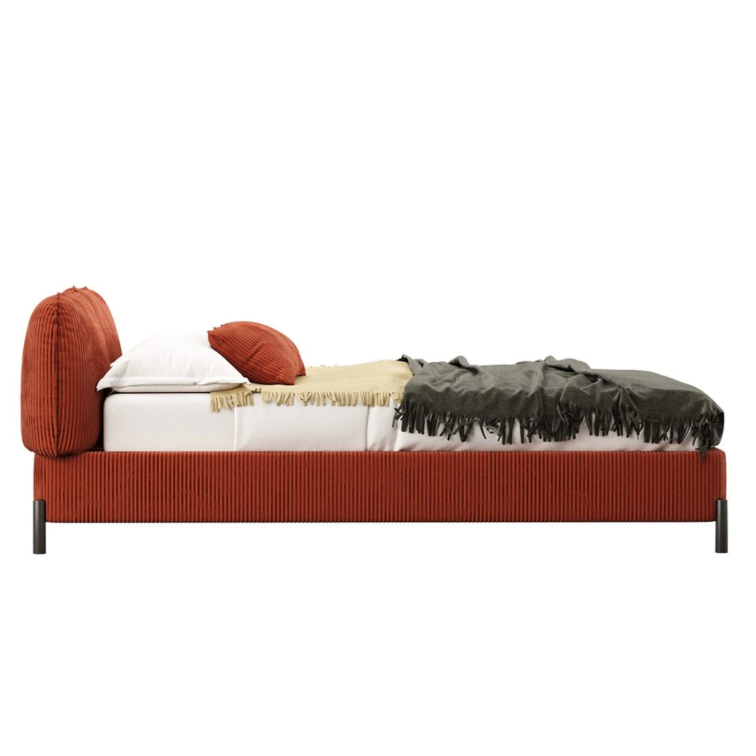 سرير بتصميم عصري مميز يجمع بين الجمال والوظيفة، يتميز بأبعاد متعددة تناسب احتياجاتك (عرض 150-160-180-200 سم × عمق 238 سم × ارتفاع 85 سم). مصنوع من خشب طبيعي عالي الجودة، مع تفاصيل قماشية فاخرة وإطار معدني ، مما يضمن متانة استثنائية. يأتي بلون أحمر جذاب، مما يضفي لمسة حيوية ودافئة على غرفة نومك. يُعتبر هذا السرير الخيار المثالي لمن يبحث عن تصميم يجمع بين الأناقة والراحة في مساحة النوم الخاصة بهم.