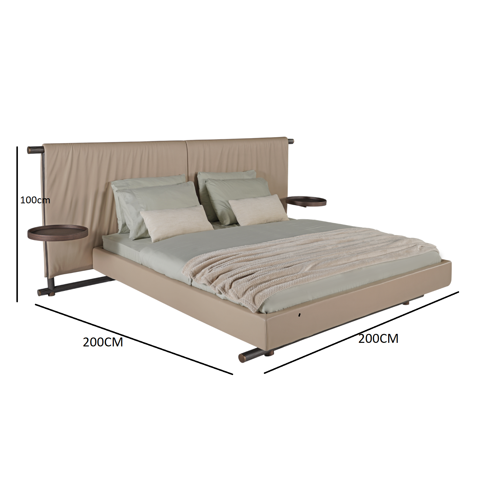 سرير "كيمونو" المميز بتصميم فاخر يجمع بين الألوان الأسود، البيج، والبني ليضفي لمسة من الأناقة والهدوء على غرفة النوم. مصنوع من خشب طبيعي متين مع تفاصيل جلدية فاخرة ولمسات معدنية تضيف لمسة عصرية. يتميز بمقاسات رحبة: عرض 200 سم، عمق 200 سم، وارتفاع 100 سم، ليمنحك مساحة مريحة واستثنائية للنوم. تصميمه الراقي يجمع بين البساطة والجمال، مما يجعله قطعة مثالية لإضفاء طابع فخم ومميز على ديكور غرفة النوم.