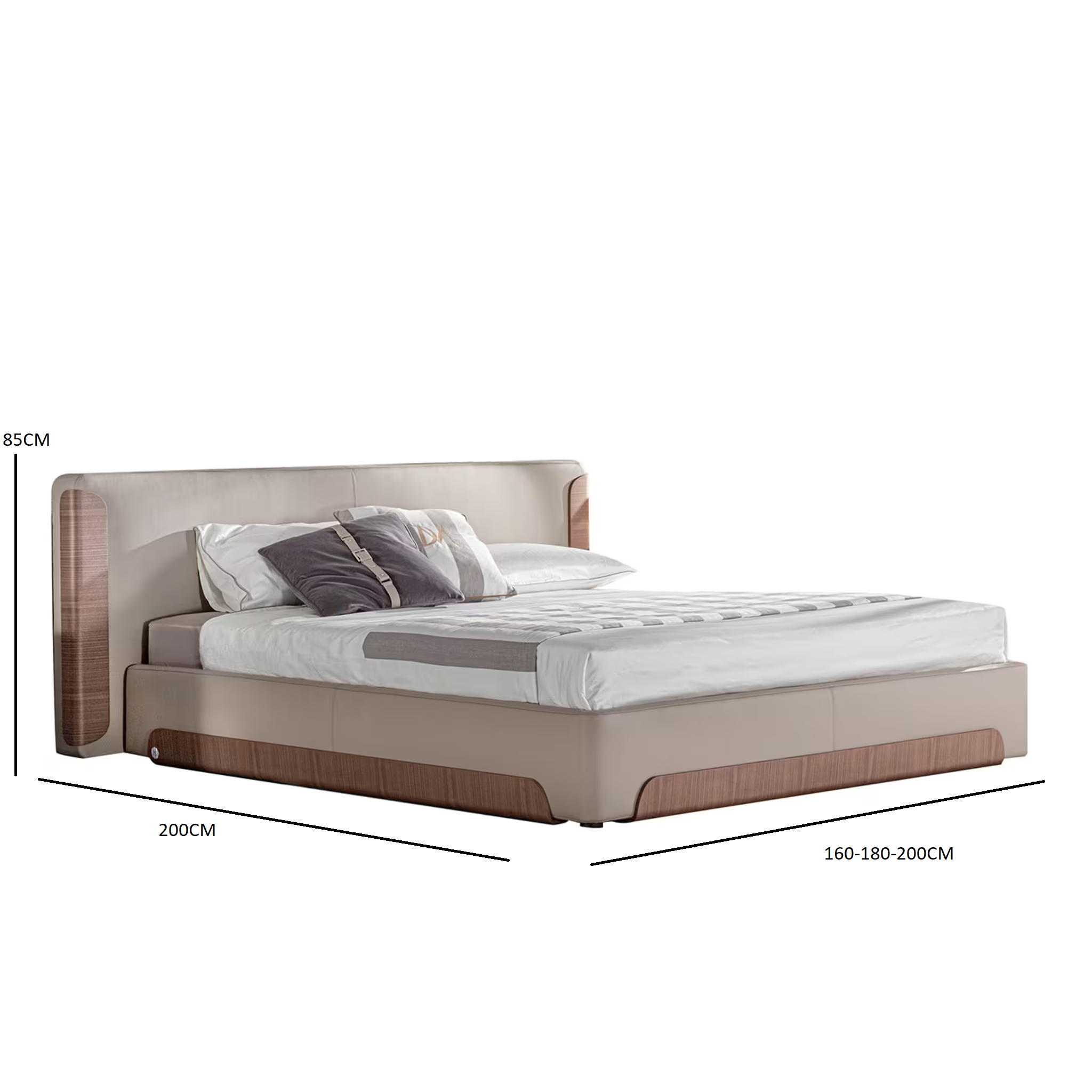 استمتع بتجربة نوم مريحة مع هذا السرير العصري، الذي يجمع بين الأناقة والوظائف العالية. تأتي أبعاده بارتفاع 85 سم، وعمق 220 سم، مع خيارات عرض متنوعة (150-160-180-200 سم)، مما يجعله مناسبًا لمختلف أحجام الغرف. مصنوع من خشب طبيعي عالي الجودة، يقدم هذا السرير متانة واستقرار لفترة طويلة. لونه البني مع البيج يضفي لمسة دافئة وجذابة على أي مساحة نوم