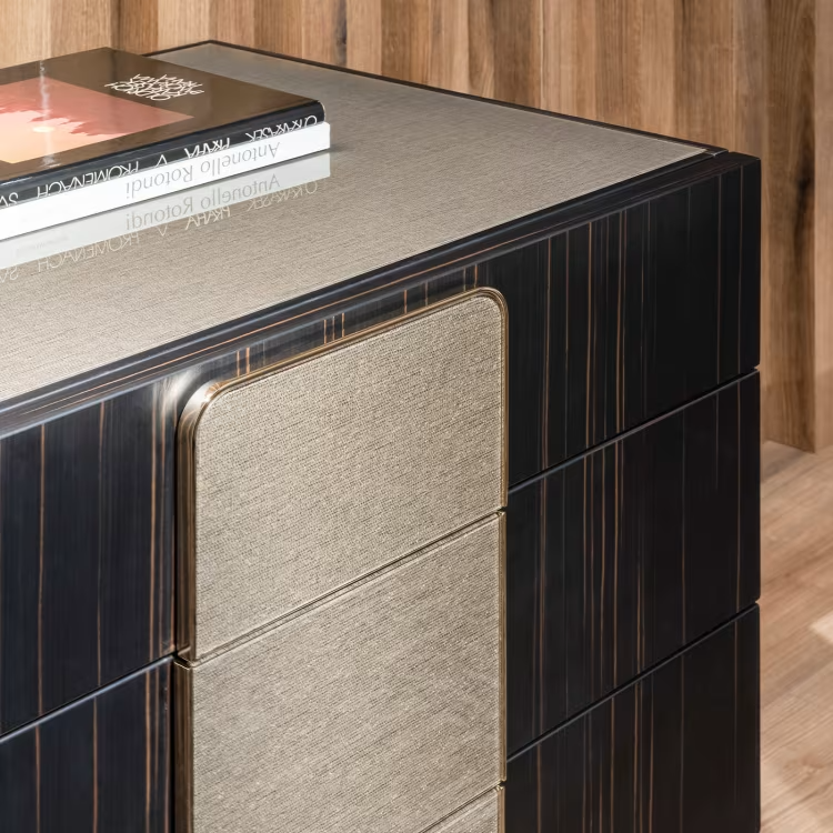 هذا الكومودينو الأنيق يجمع بين الفخامة والعملية، حيث يتميز بأبعاد 70 سم عرضًا، 47 سم عمقًا، و50 سم ارتفاعًا. مصنوعة من خشب طبيعي عالي الجودة مع لمسات من معدن ، مما يضمن المتانة والجاذبية. اللون الأسود مع البيج والذهبي يضفي لمسة عصرية وأنيقة، مما يجعله إضافة مثالية لأي غرفة نوم أو مساحة معيشة.