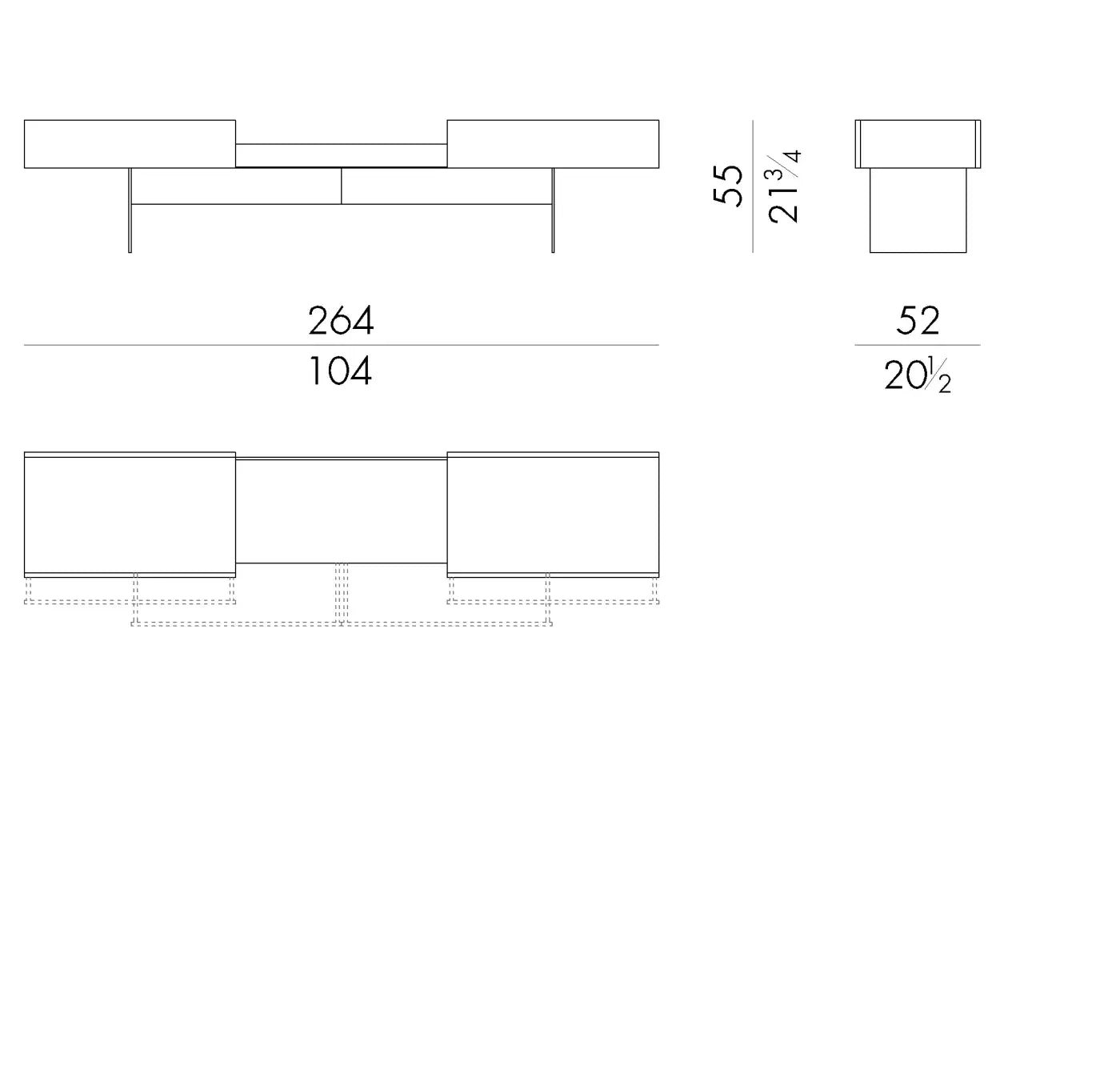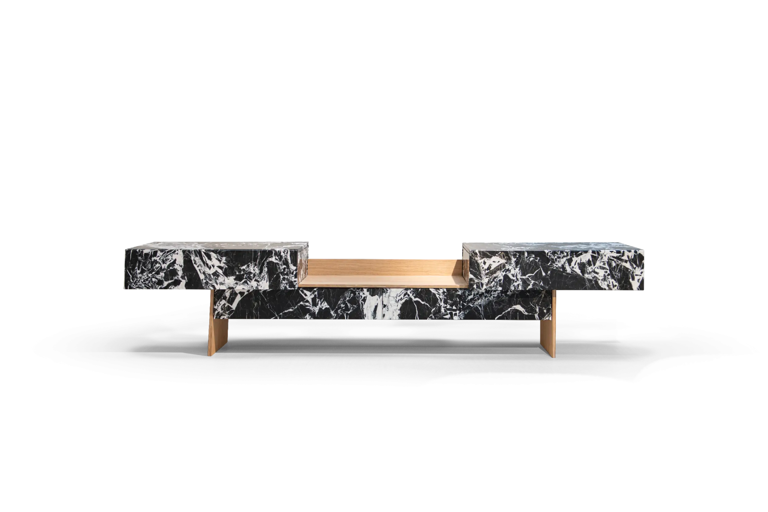 Details: Dimensions: Height 55 × Depth 52 × Width 264 cm Materials: Natural Wood – Marble Substitute Wood Color: Wooden with White and Black