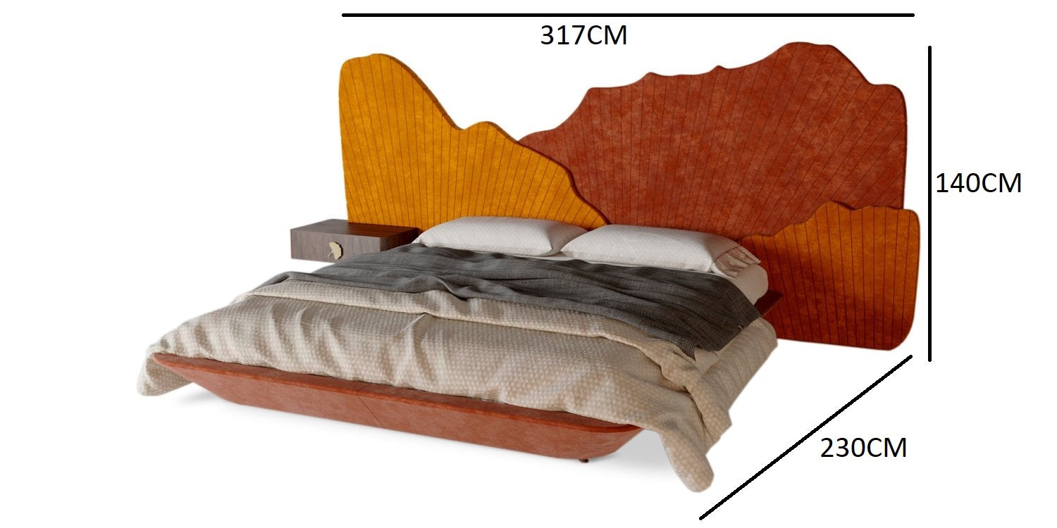 سرير بتصميم فريد يجمع بين الجرأة والأناقة ليضفي لمسة لونية مميزة على غرفة النوم.