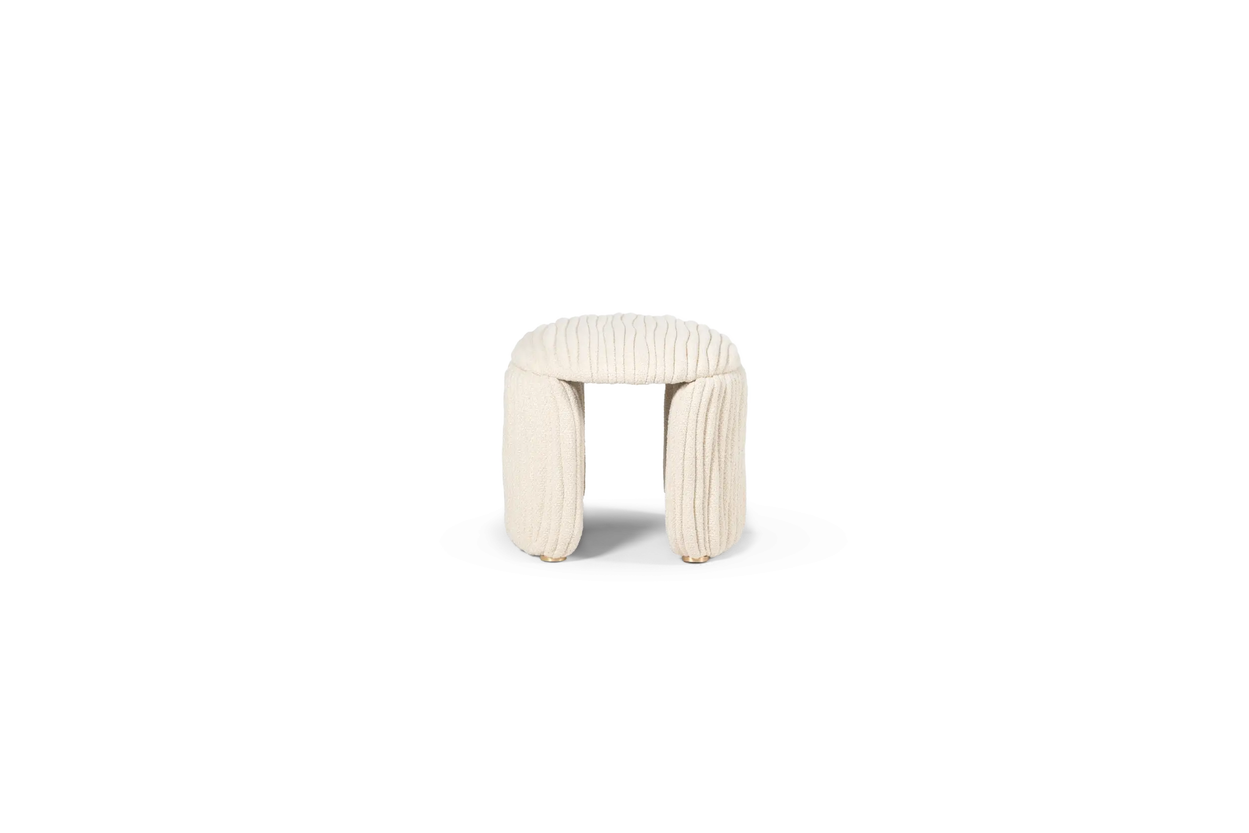 Details: Chair Dimensions: Height 80 × Depth 65 × Width 58 cm Pouf Dimensions: Height 46 × Diameter 50 cm Materials: Natural wood – Fabric Color: White