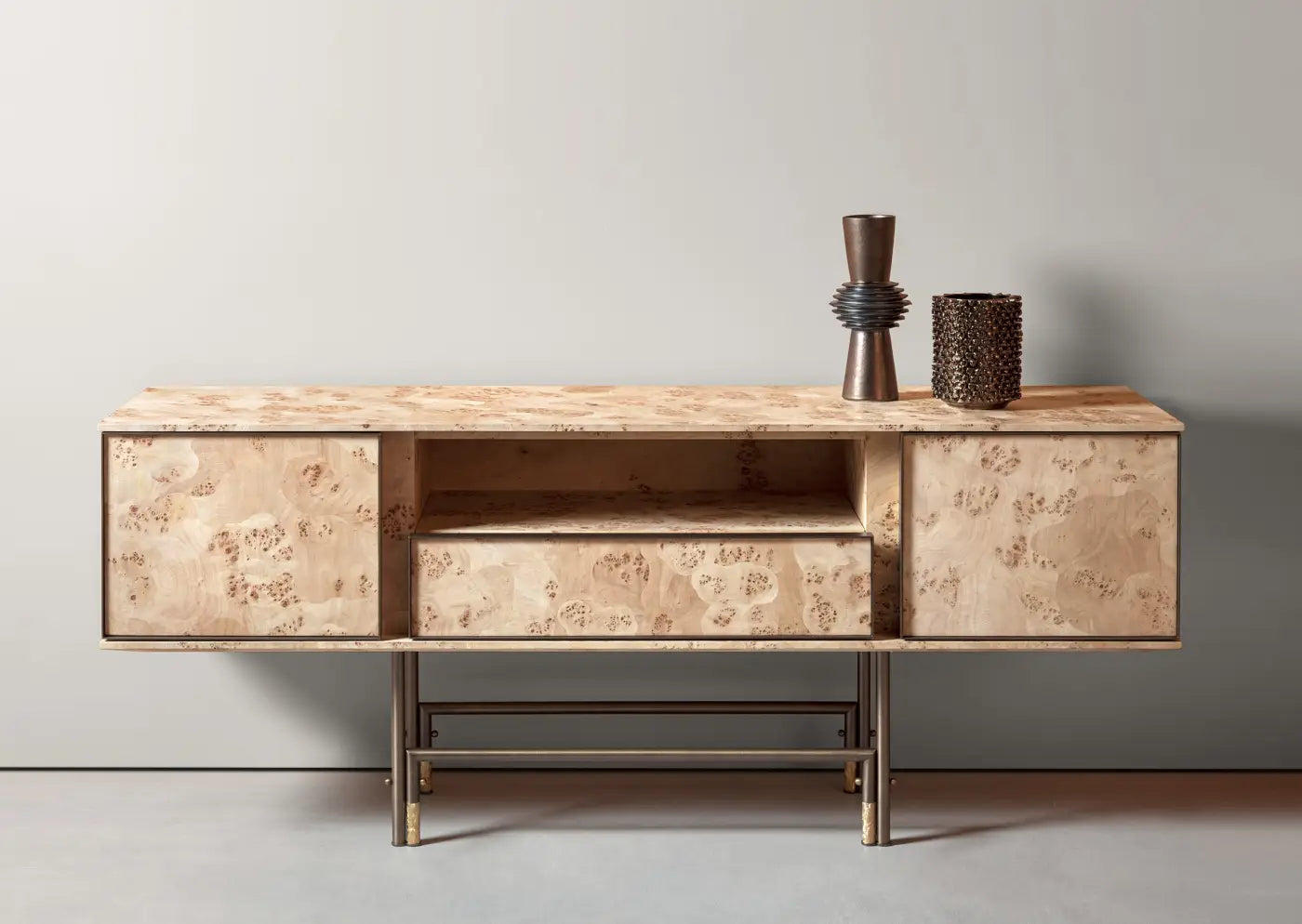 Description: The Eden Sideboard combines timeless elegance with modern functionality, making it a perfect addition to any sophisticated interior. Crafted from natural wood for durability and enhanced with sleek metal accents for a contemporary touch. Its spacious storage compartments offer both practicality and style. The beige color paired with bronze details adds warmth and refined charm to any space.