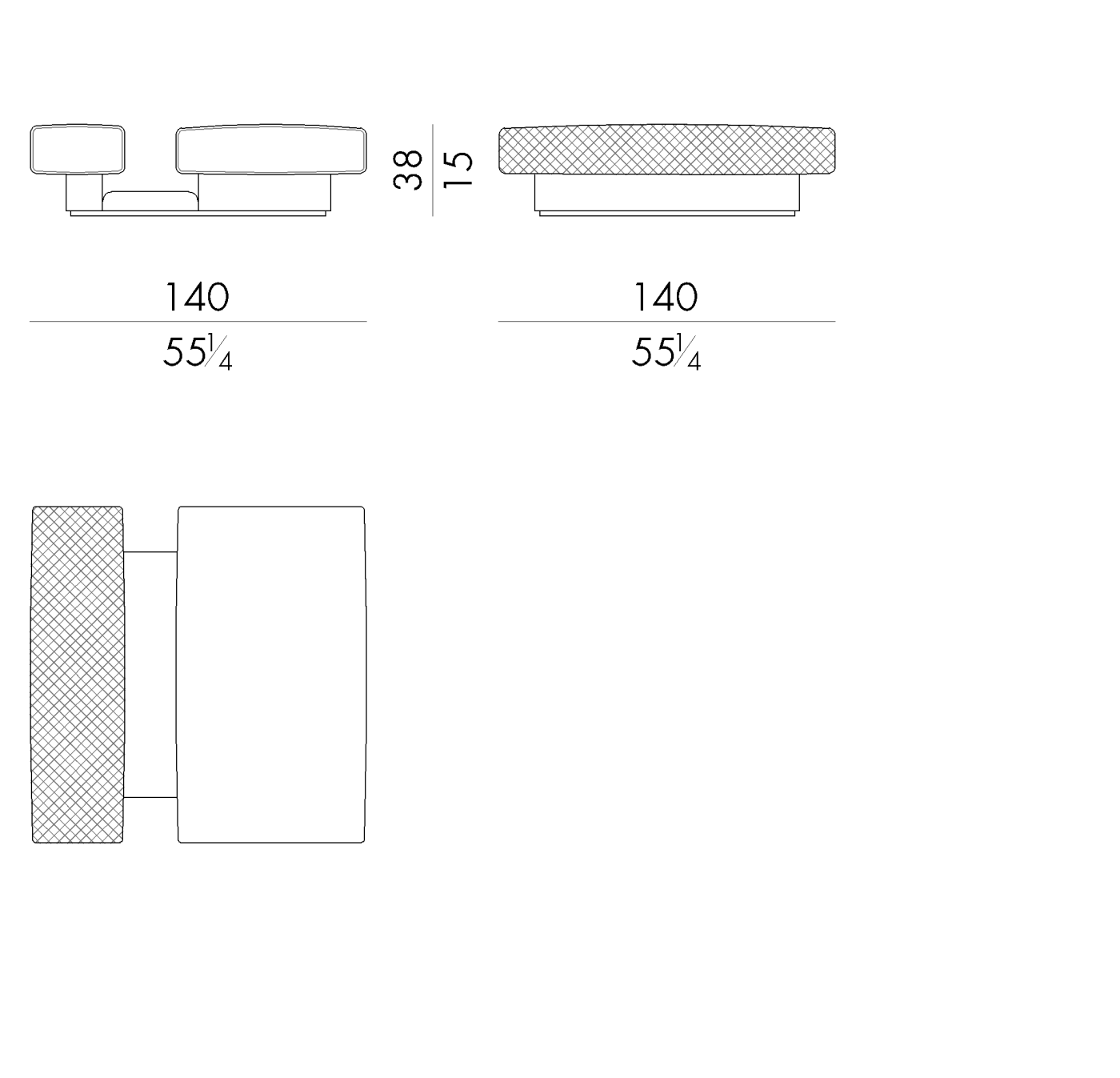 Details: Dimensions: Height 38 × Width 140 × Depth 140 cm Materials: Natural wood – Fabric – Metal Color: Brown with White
