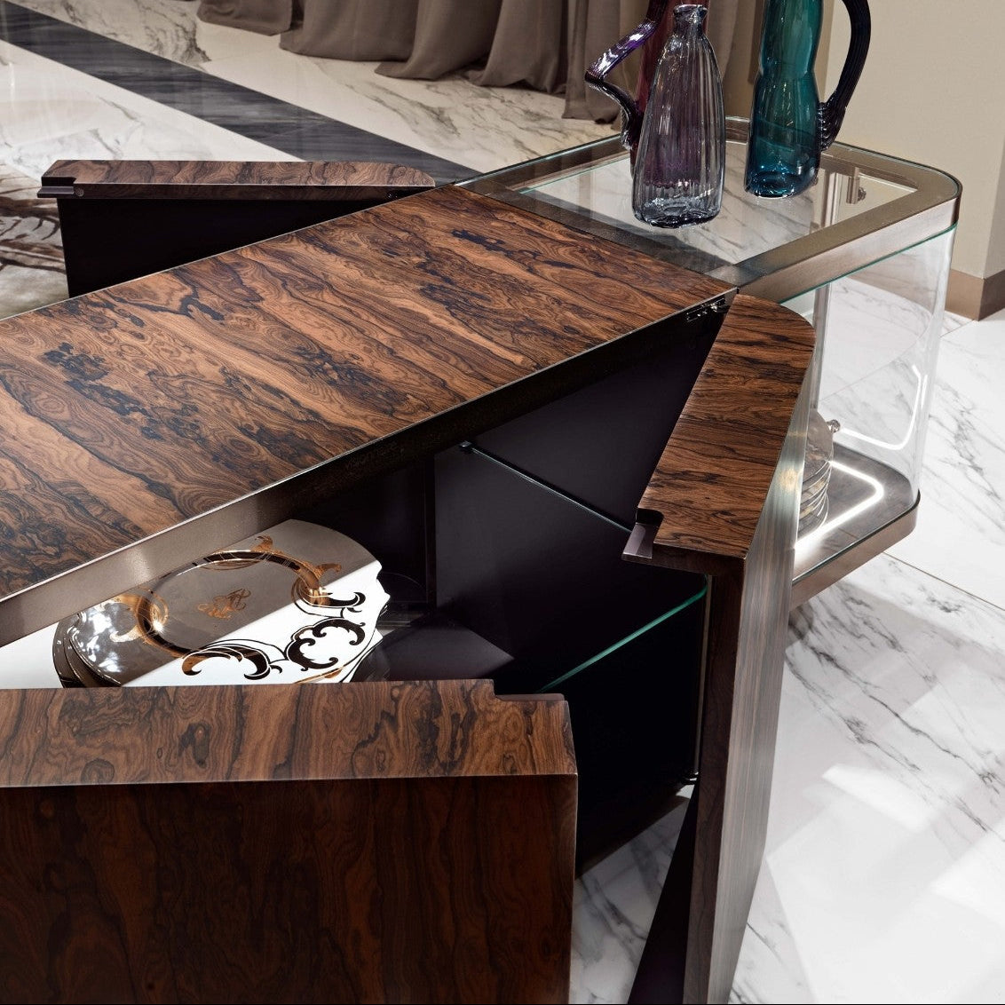• Materials: Natural Wood – Glass – Stainless Steel