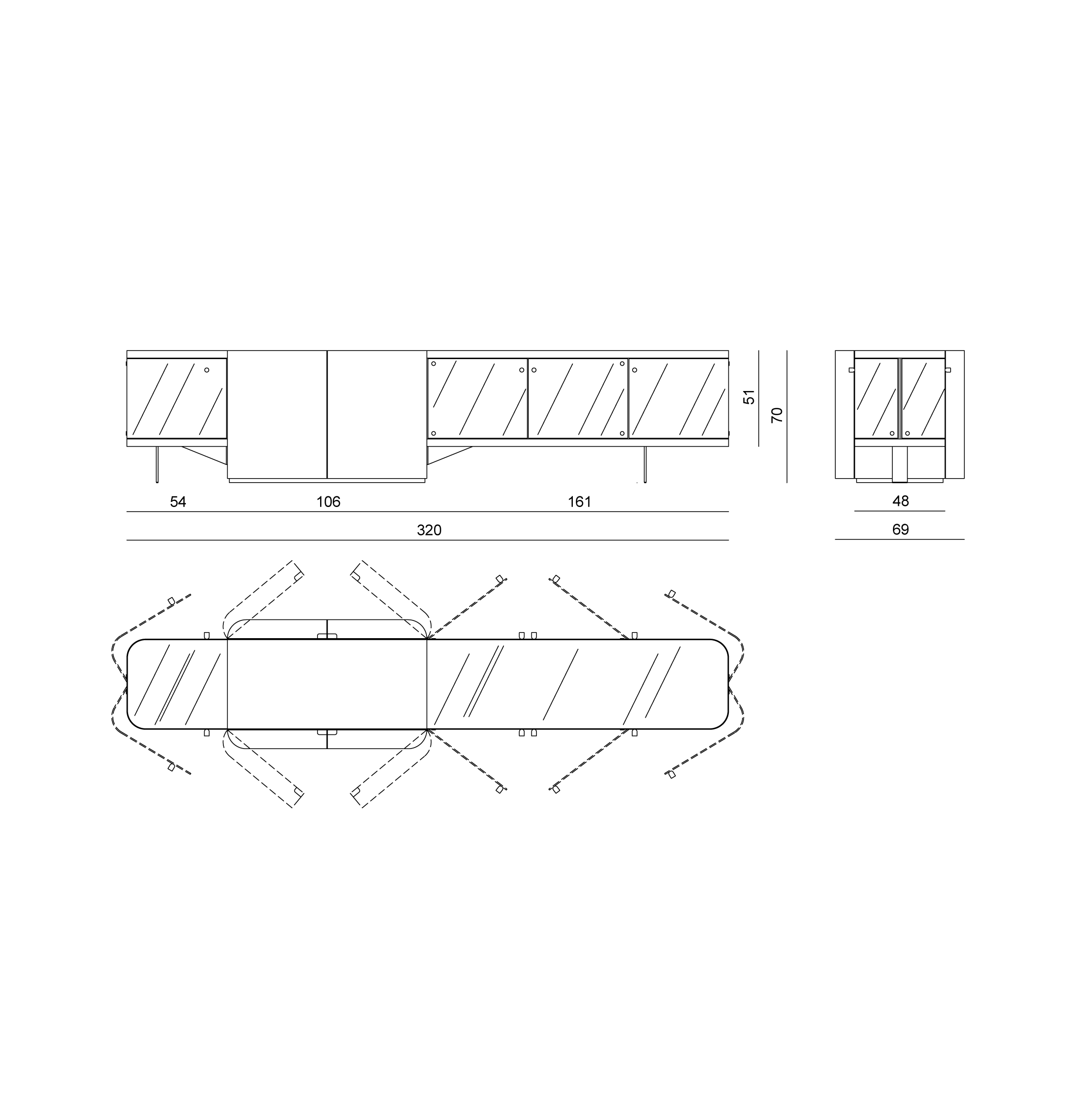 Width 320 cm × Depth 69 cm × Height 70 cm