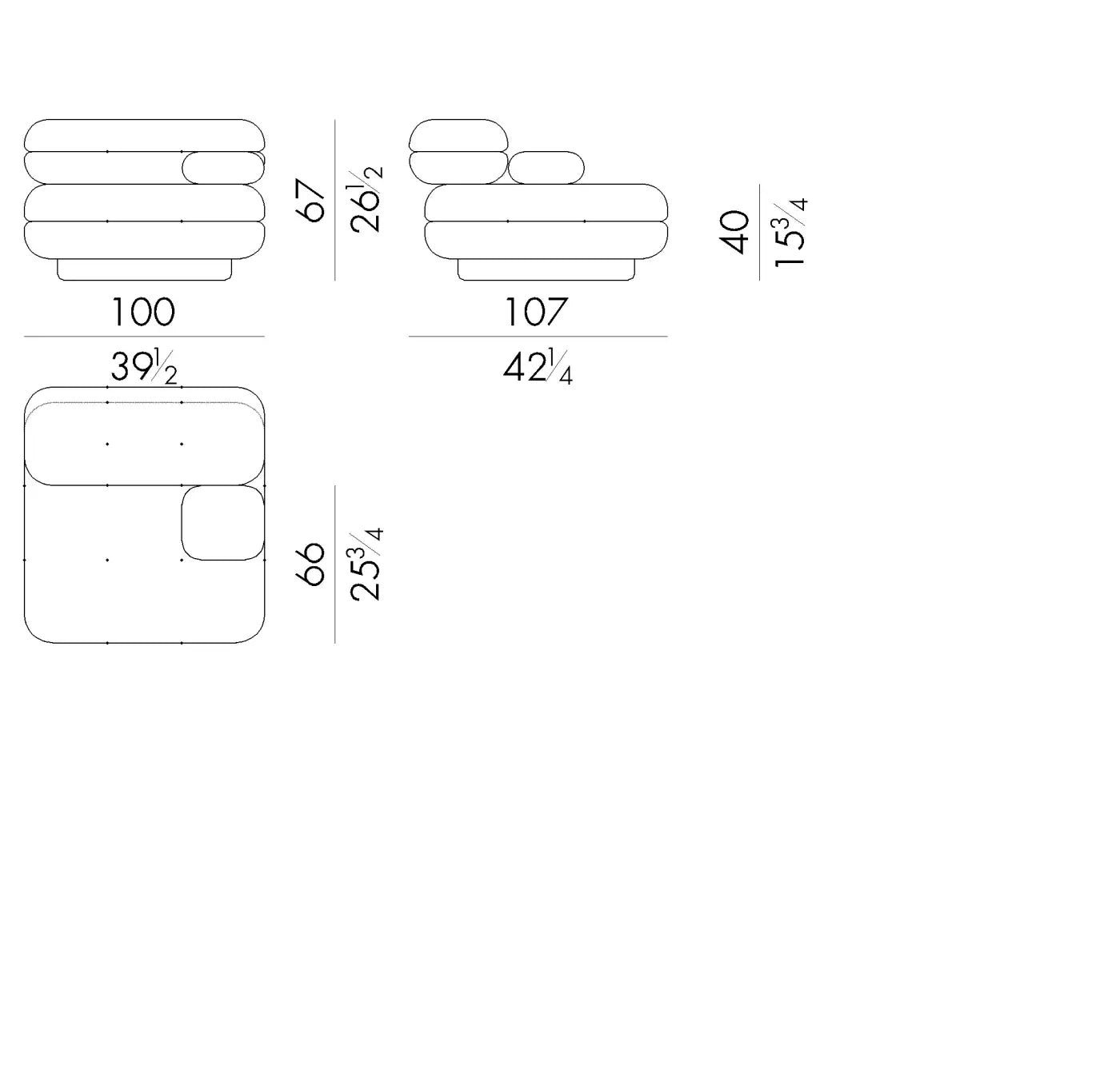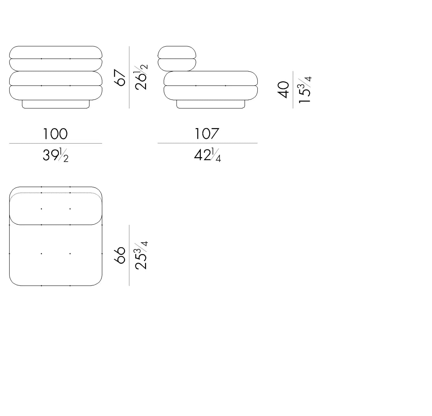 Armless : Width 100 cm × Depth 107 cm × Height 67 cm