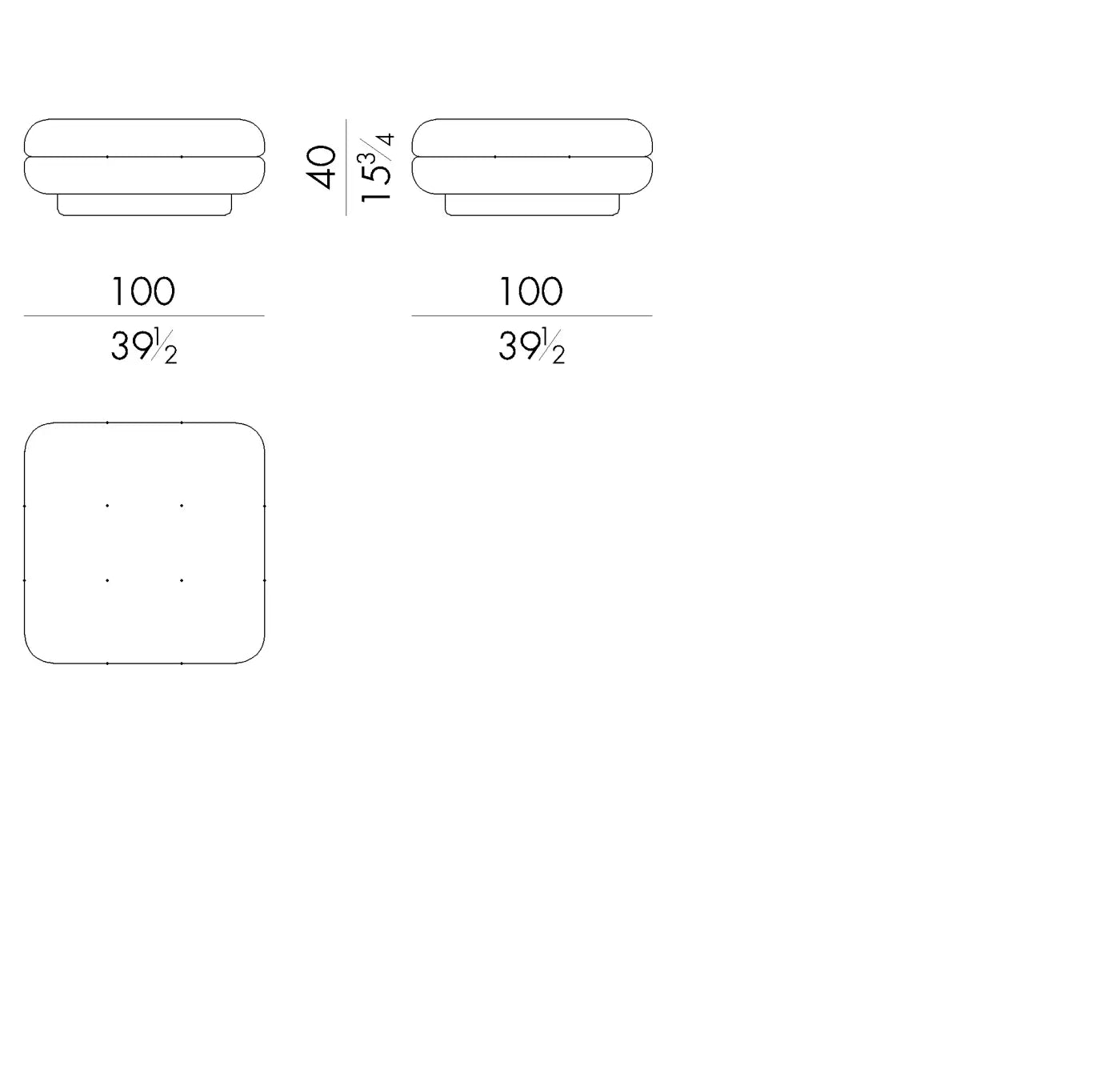 Pouf 1: Width 100 cm × Depth 100 cm × Height 40 cm
