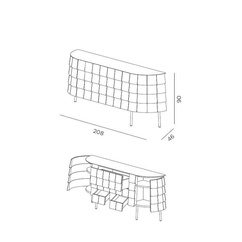 Dimensions: Width 208 cm × Depth 46 cm × Height 90 cm