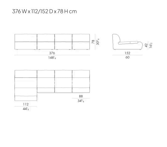 Dimensions: Height 78 × Depth 112/152 × Width 376 cm