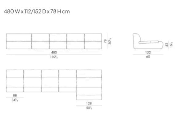 Dimensions: Height 78 × Depth 112/152 × Width 376–480 cm