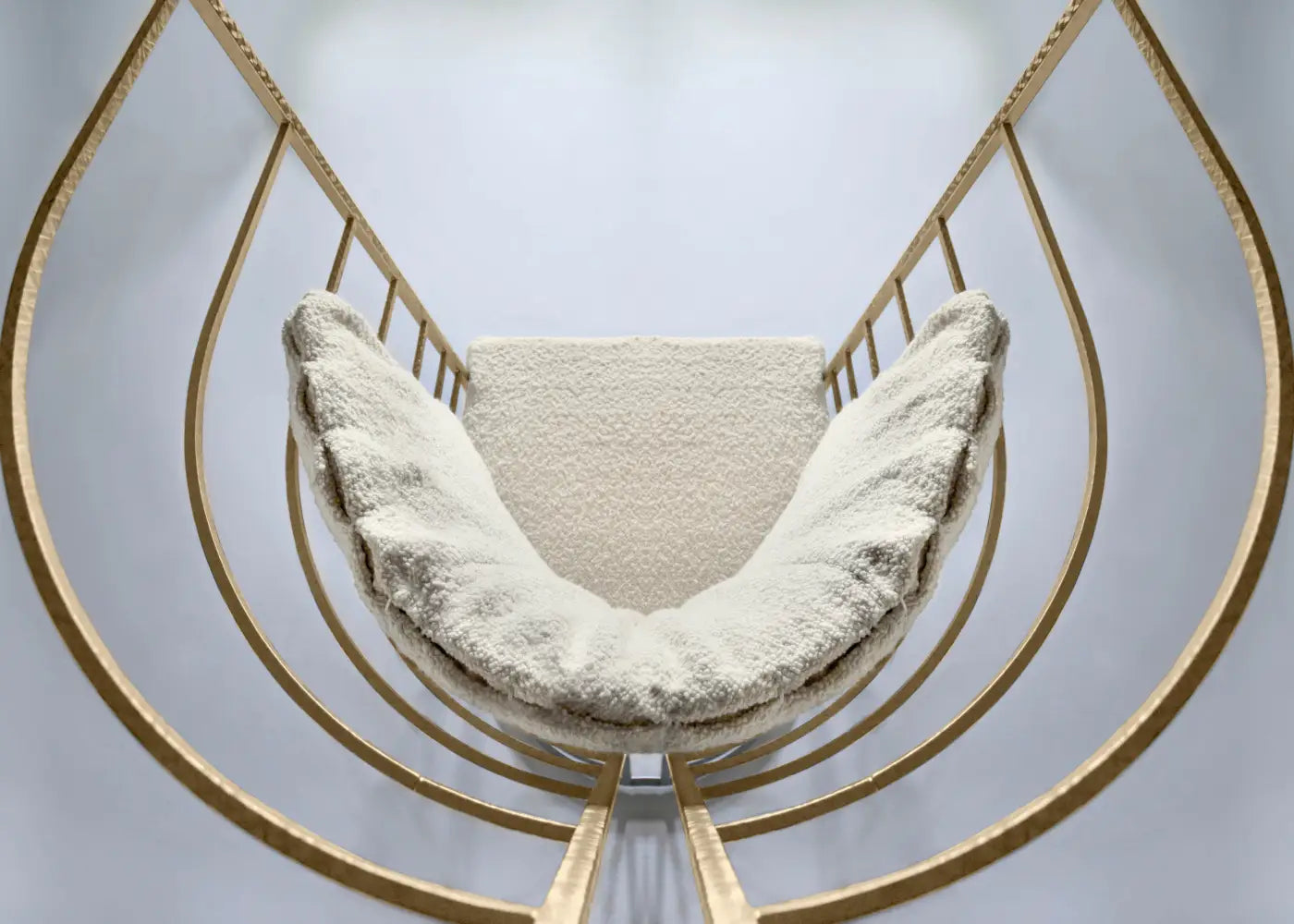 The Soothe Recliner is designed for ultimate relaxation, combining luxurious style with modern functionality. Crafted with a sturdy metal frame for durability and upholstered in soft, high-quality fabric for exceptional comfort. Its tall backrest and smooth reclining design provide excellent support for rest and leisure. The gold and white color combination adds a refined and elegant touch to any contemporary space.