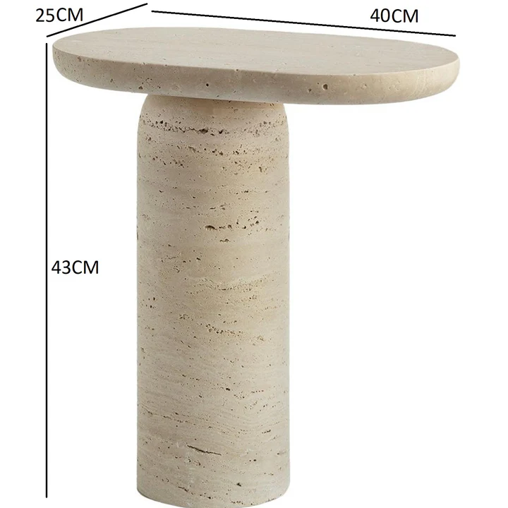 تأتي هذه الطاولة الجانبية من الترافرتين بتصميم أنيق وغير تقليدي يضفي لمسة فنية على أي زاوية في المنزل. مصنوعة من الرخام الطبيعي بلونه البيج الدافئ، لتجمع بين البساطة والفخامة. بمقاس 25×40 سم وارتفاع 43 سم، تعد مثالية للاستخدام بجانب الكنب أو السرير. خامتها الراقية تضمن متانة وأناقة تدوم مع مرور الوقت.