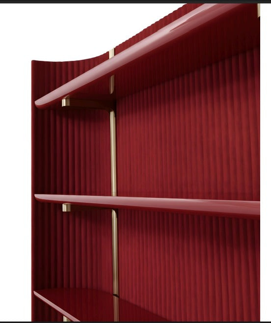The Driftline Bookshelf features a bold and sophisticated design that combines modern aesthetics with practical functionality. Crafted from natural wood, metal, and fabric accents, it offers both durability and a refined visual appeal. The rich burgundy (nebety) color adds warmth and character, making it a standout piece in any contemporary interior.