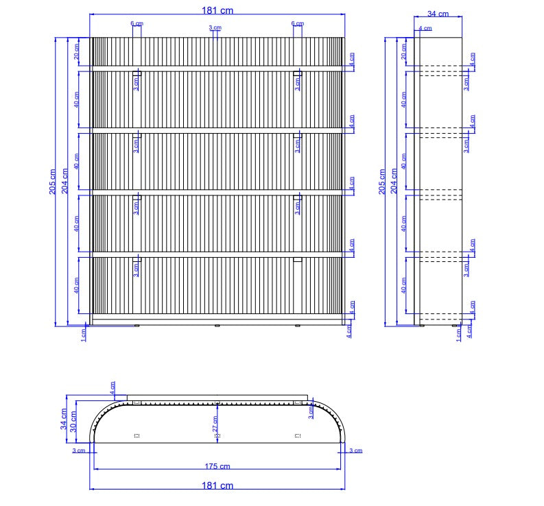 Height 205 × Depth 34 × Width 181 cm