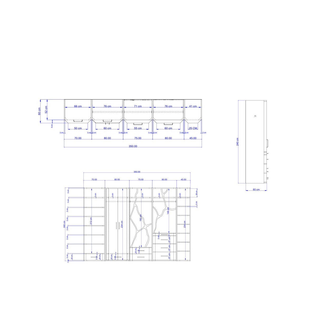 Dimensions: Height 240 × Width 350 × Depth 60 cm