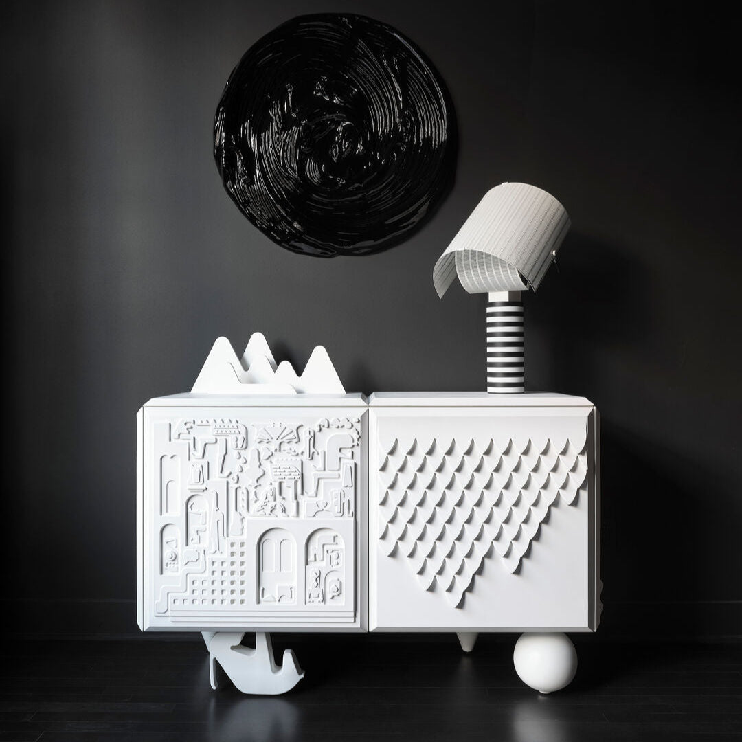 This artistic console redefines modern elegance through its intricate 3D patterns and bold geometric design. Crafted from natural wood, it perfectly balances functionality with artistic sophistication. Ideal for those who appreciate distinctive and contemporary furniture, this console serves as a true statement piece that elevates the style of any interior.