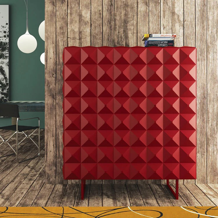 A buffet with a unique and eye-catching design that combines elegance and modern style. Crafted from high-quality natural wood with durable metal accents, it ensures both strength and aesthetic appeal. With dimensions of 140 cm in height, 120 cm in width, and 45 cm in depth, it offers ample storage space for your essentials. The bold red color adds a vibrant and luxurious touch, making it a standout piece in any contemporary interior.