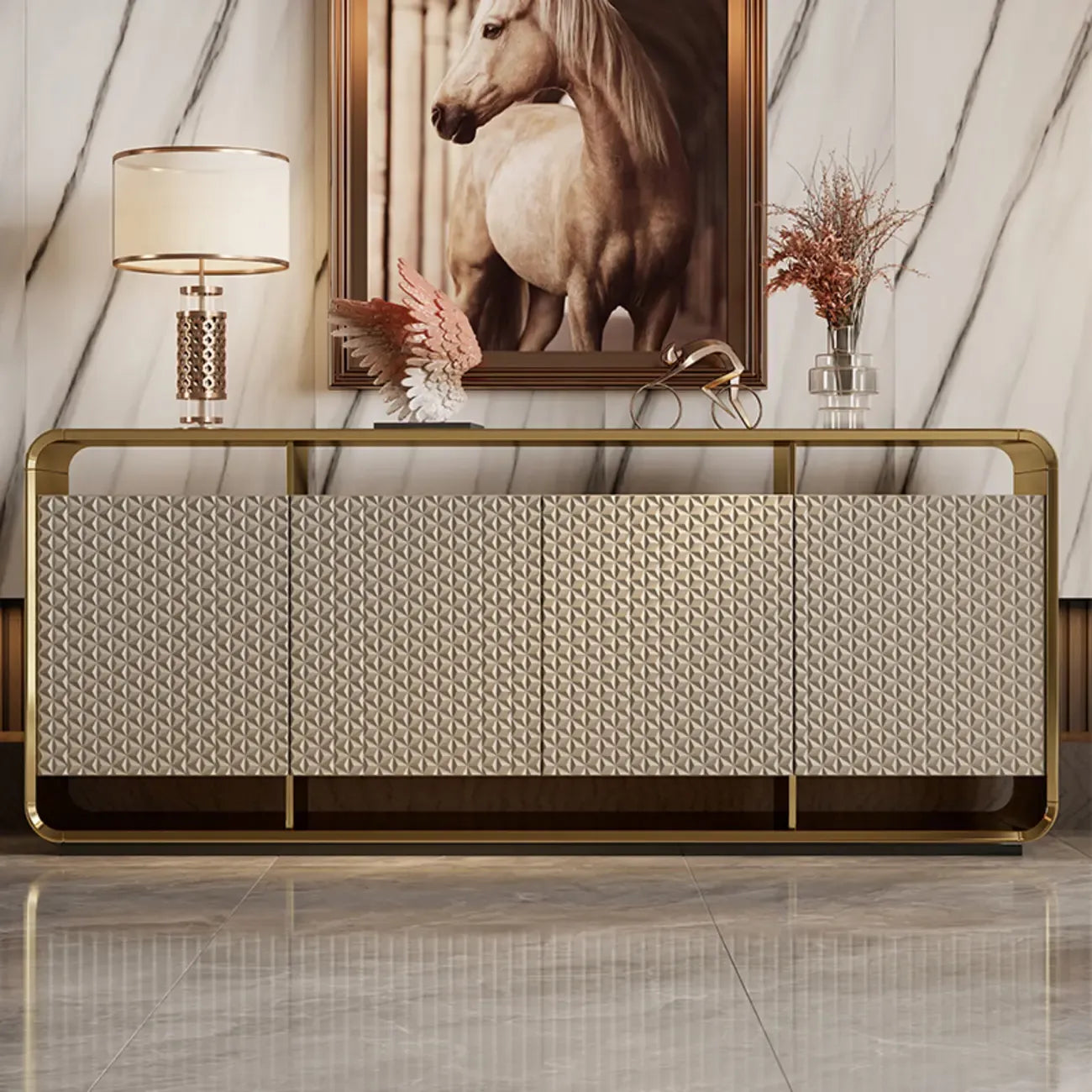 Crafted from high-quality natural wood and accented with sleek metal details, this buffet ensures durability and timeless appeal. The elegant color combinations of gold with black or gold with beige add a touch of sophistication and warmth, making it a stunning addition to any dining or living area.