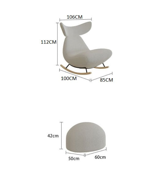 Description: A chair with a refined design that combines luxury and comfort, featuring ideal dimensions suitable for various uses. The chair measures 112 cm in height, 86-106 cm in width, and 100 cm in depth, providing a relaxing and comfortable seating experience. Crafted from high-quality natural wood and upholstered with premium fabric, it comes in a white color with wooden accents, creating a harmonious and elegant look. This chair is also available in orange and brown tones with wooden touches. It is a perfect choice to add a sophisticated aesthetic to living rooms or upscale spaces, serving as a focal point in any interior design.