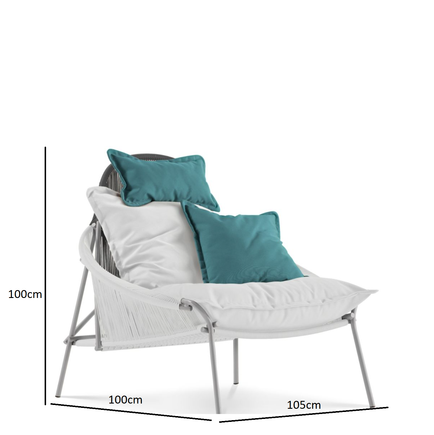 Description: A modern and distinctive outdoor chair that adds a vibrant touch to open spaces. It features bold and varied color combinations including gray, orange, yellow, red, and blue. Made from durable metal resistant to outdoor elements, with comfortable fabric suitable for daily use. With dimensions of 100×100×105 cm, it’s ideal for gardens, balconies, or serene outdoor areas.