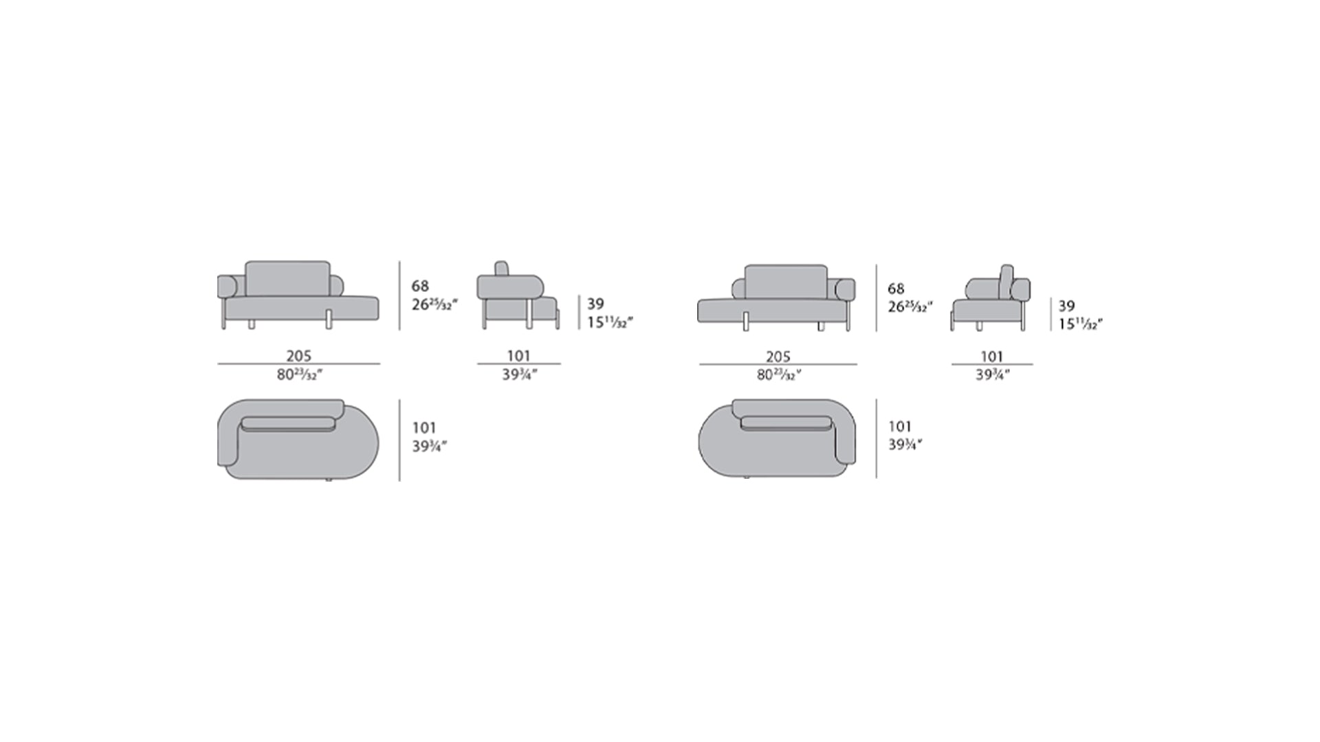 Left Facing: H68 x D101 x W205 cm Material: Natural Wood - Fabric - Metal Color: Gray with Gold