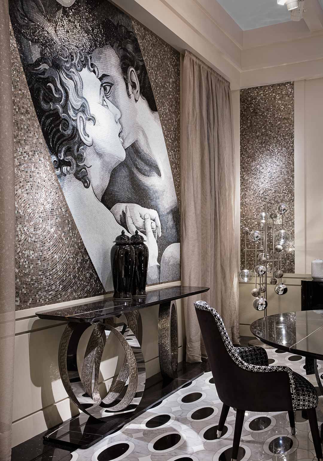 Description : Ellipse Console features an artistic structure with intersecting oval rings that create visual movement. Its sleek top and sculptural silhouette make it a luxurious statement for entryways and living spaces. A sophisticated piece that elevates any interior with modern elegance. Details : Color: Black with gold -Black with silver Size: Width 200× Depth 45× Height 88 cm Material: Metal with marble