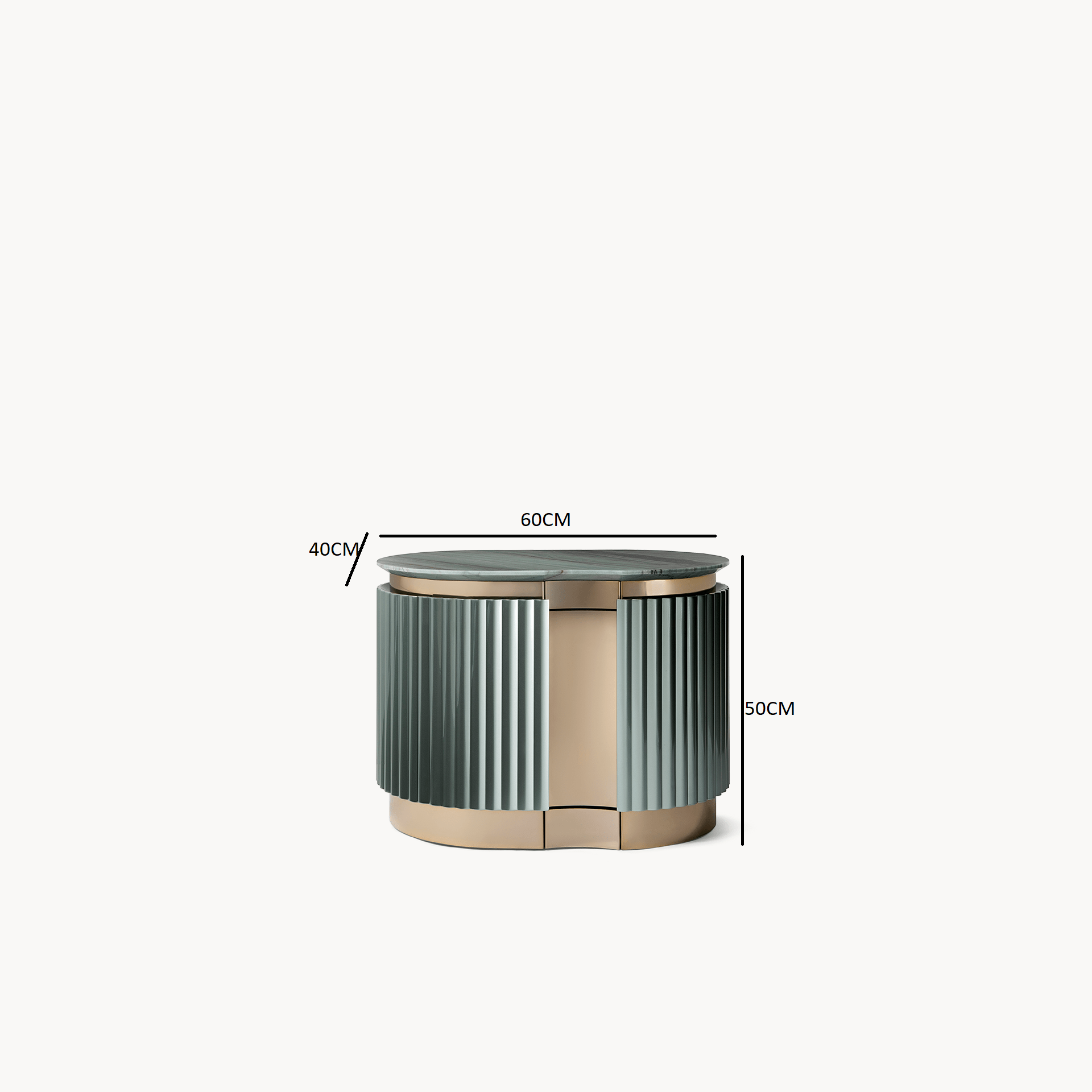 The Eva Bedside Table showcases a luxurious and elegant design that adds a refined touch to any bedroom. Crafted from high-quality natural wood with a smooth marble top, it offers both durability and timeless beauty. The rich combination of green and gold tones enhances its sophisticated appeal, creating a perfect balance between classic charm and modern style. Ideal for adding a touch of luxury to contemporary interiors.