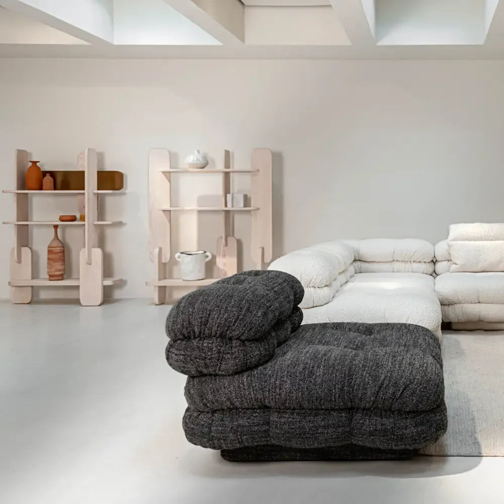 A refined bookcase featuring smooth rounded lines and elegant interlocking wooden elements. Perfect for modern spaces and adaptable placement.