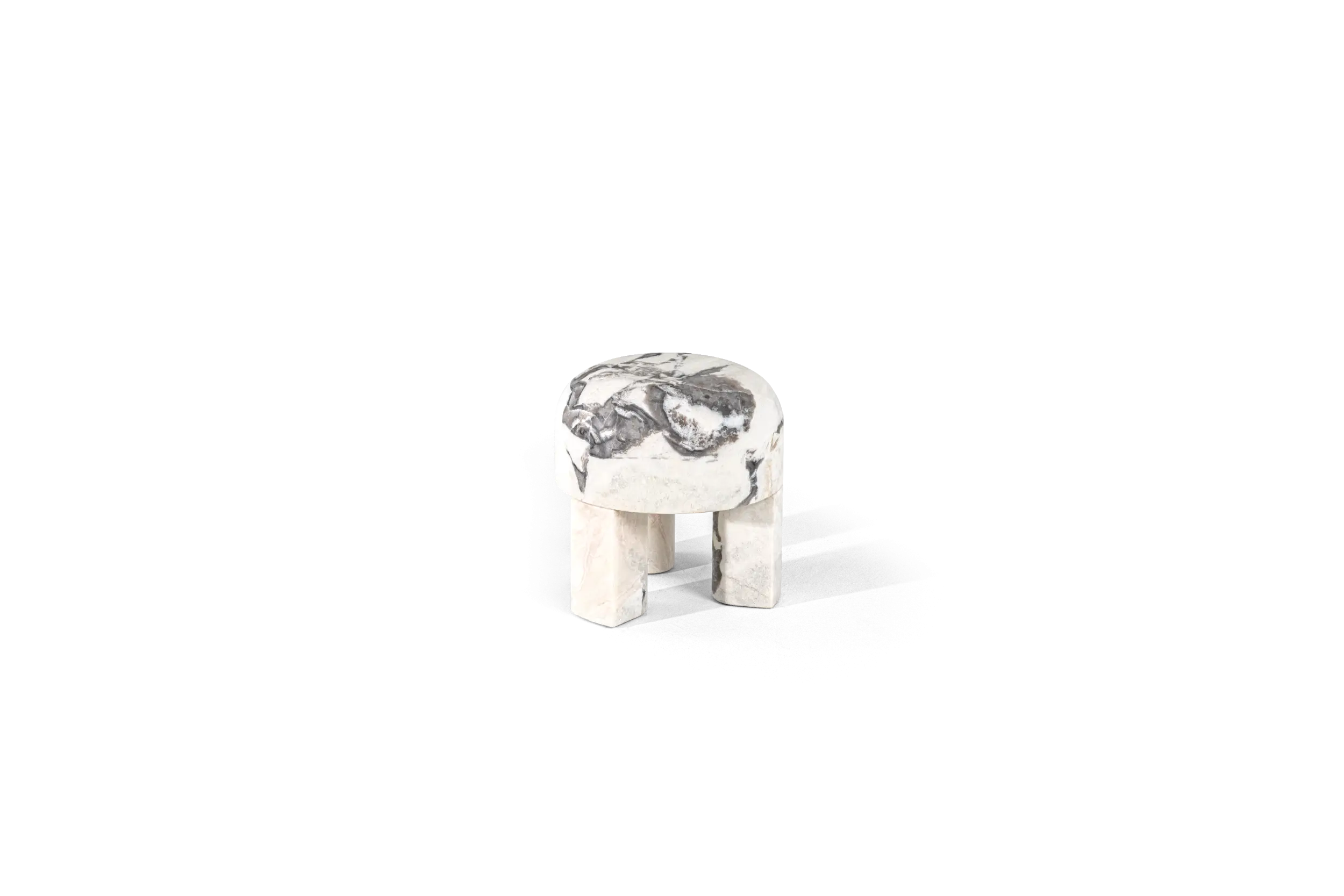 The Mellow Pouf combines modern minimalism with a touch of luxury, perfect for contemporary interiors. Crafted from high-quality engineered wood with a marble-like finish for strength and style. Its smooth surface and compact shape make it a versatile piece—ideal as a side table or decorative accent. The white and gray tones add a clean, elegant aesthetic to any space.