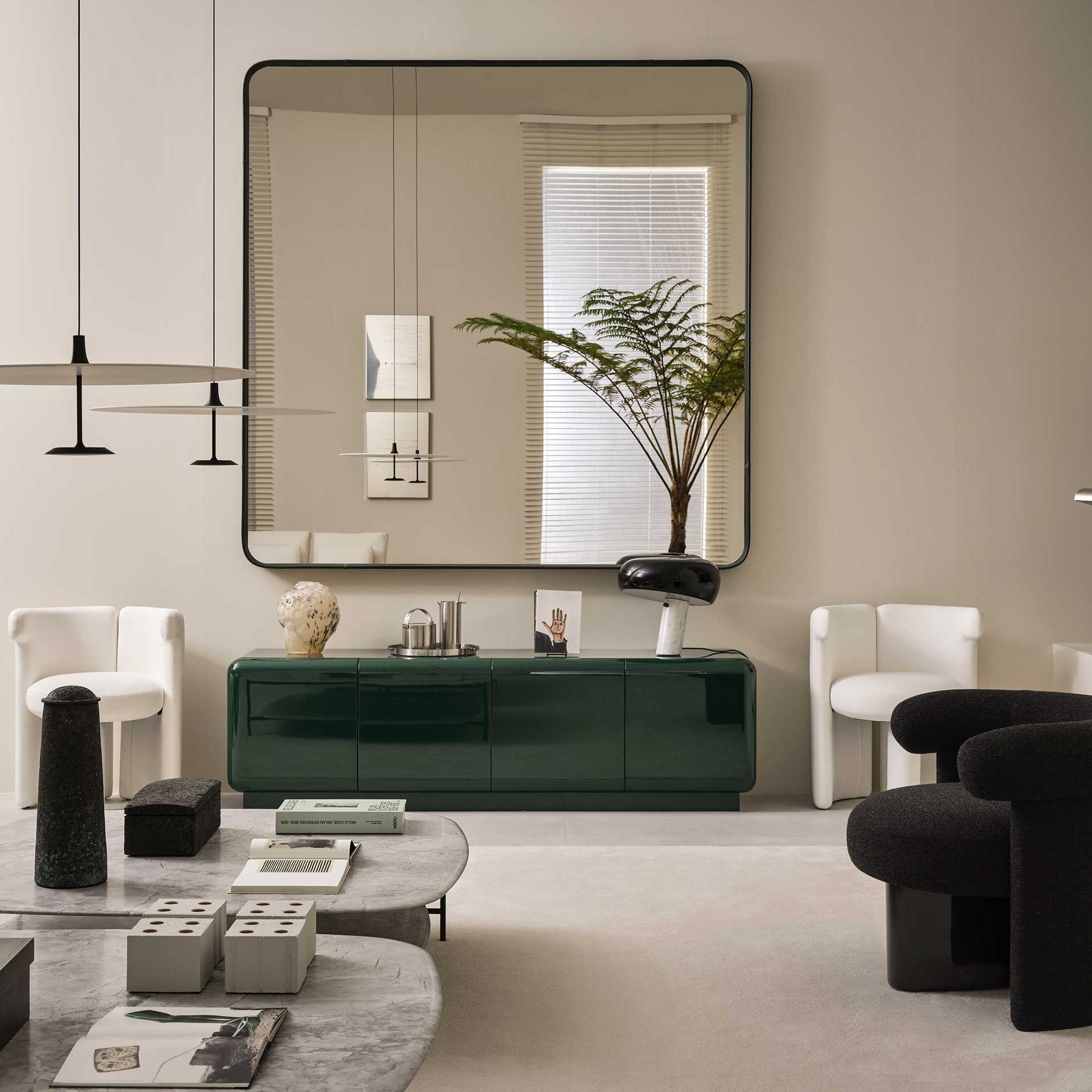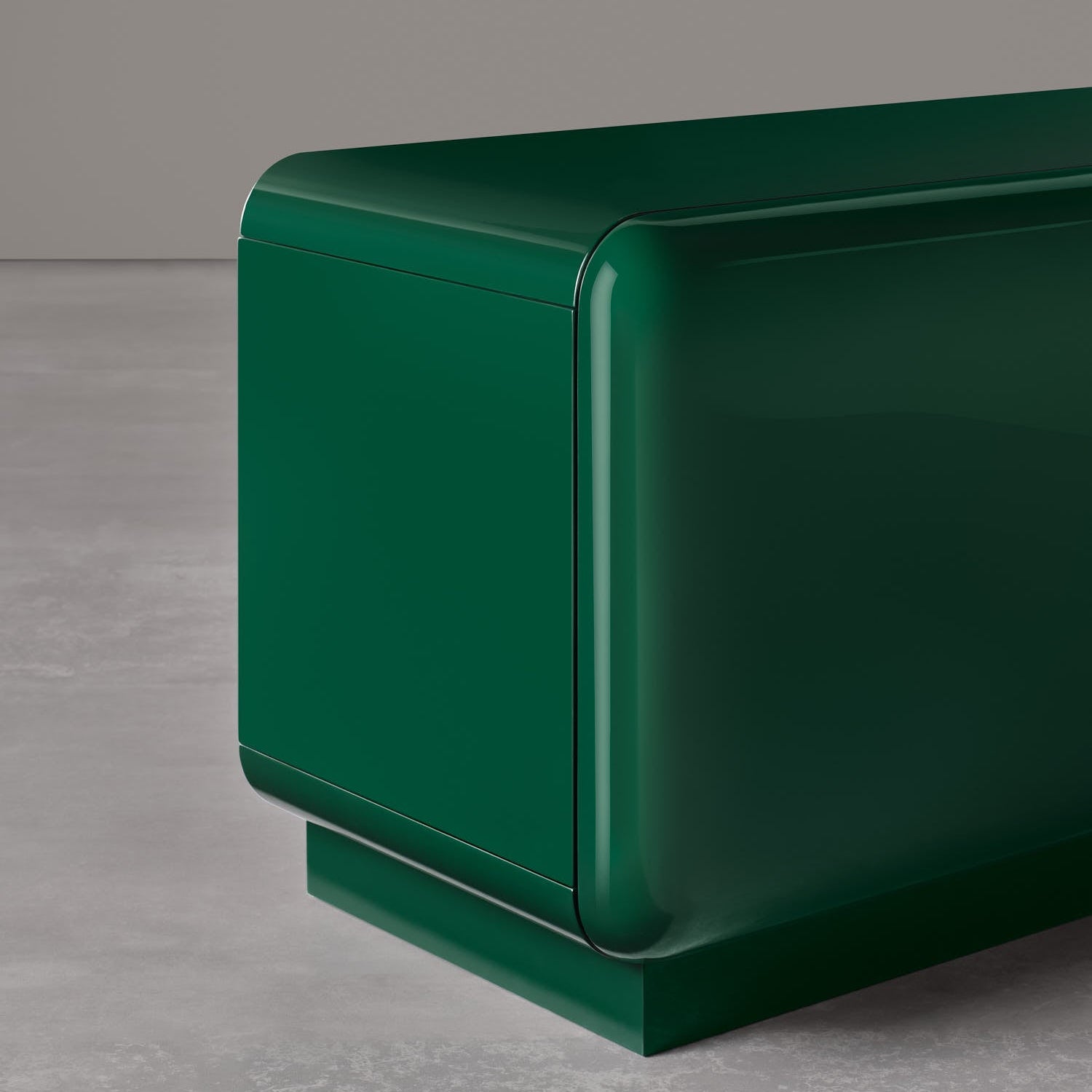 Description: The Nubo Side Cabinet features a sleek, contemporary design that emphasizes both form and function. Made from natural wood, it offers generous storage space while maintaining a clean, elegant silhouette. The dark green finish adds a sophisticated and modern touch, making it a perfect addition to living or dining areas.