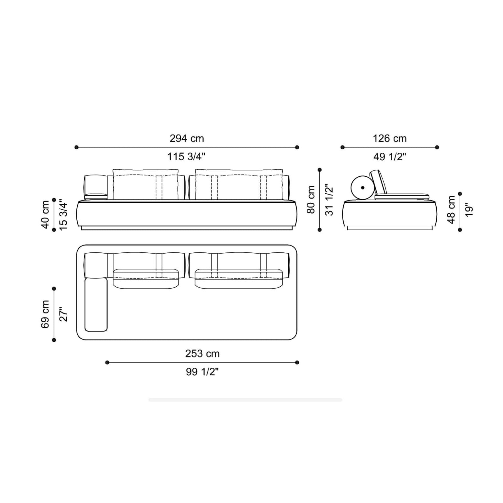 Size 2: Width 294-253 × Height 80 × Depth 126 cm