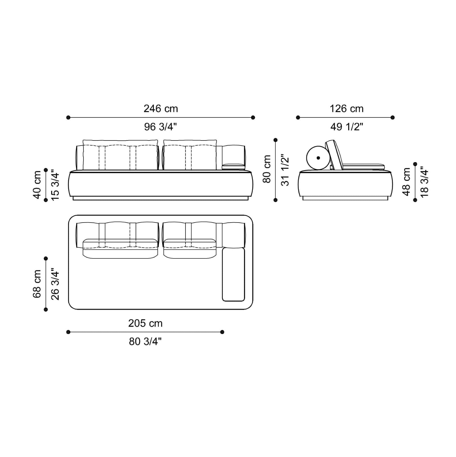 Size 1: Width 246-205 × Height 80 × Depth 126 cm