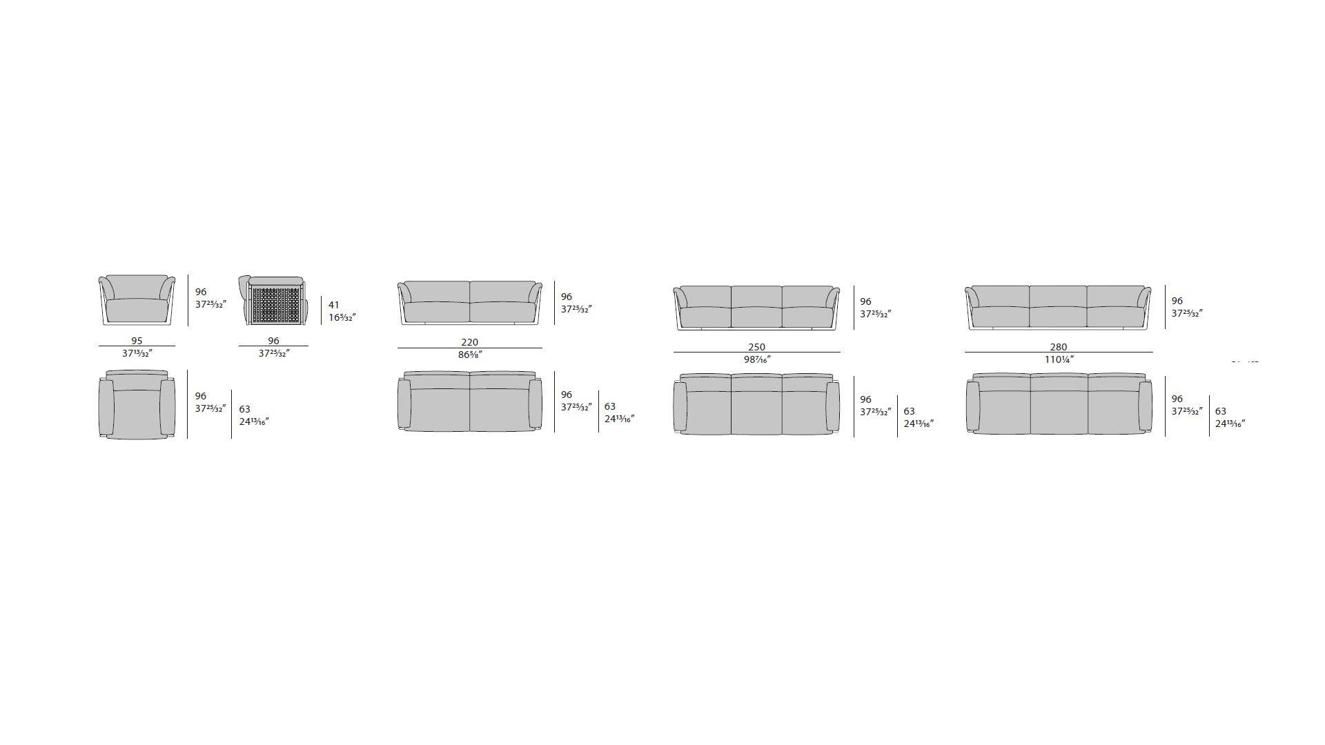 Single Sofa: Height 96 cm Γ Width 95 cm Γ Depth 96 cm