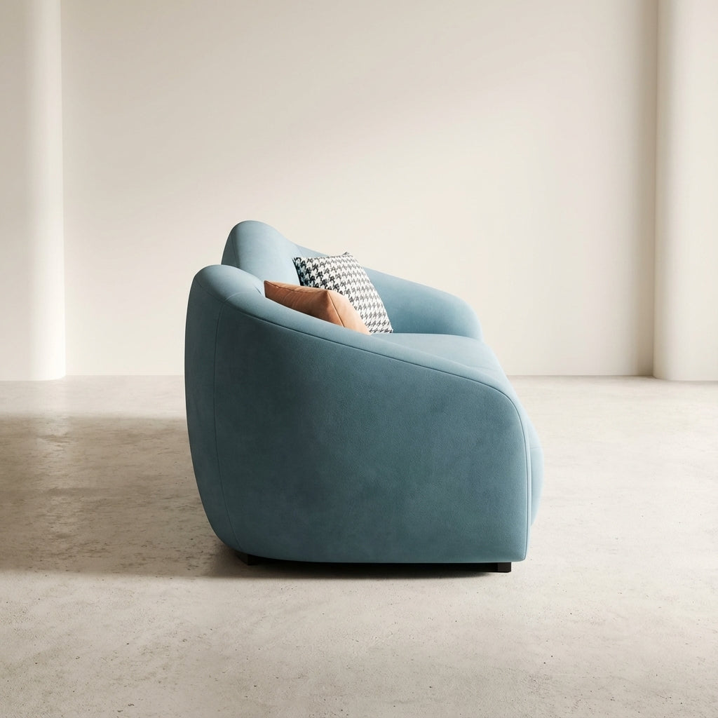 Description: A modern sofa with a distinctive design that combines comfort and elegance. With dimensions of (Depth 90 cm × Height 80 cm × Width 180-210 cm), it is perfect for living rooms or large lounges. Crafted from durable natural wood and high-quality beige fabric, it offers a soft and sophisticated look that complements modern and contemporary styles.